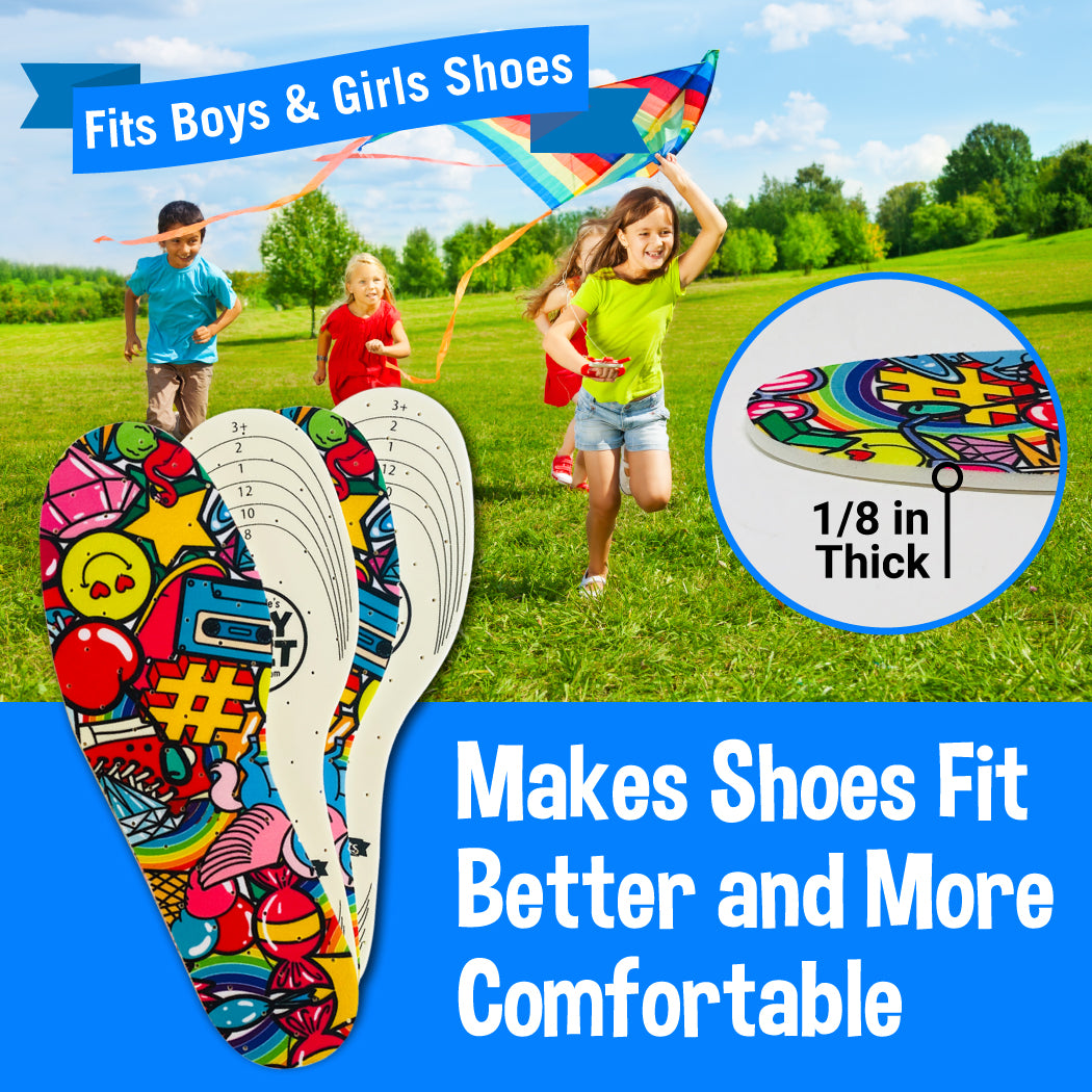 IMPROVES SHOE FIT & COMFORT: Soft foam inserts make big shoes fit better and feel more comfortable for kids.