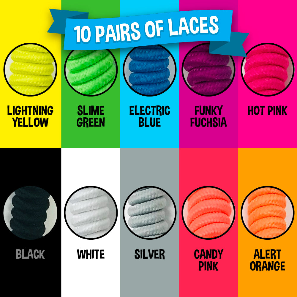 No Tie Shoelaces 10 Pairs Neon Twisty Laces