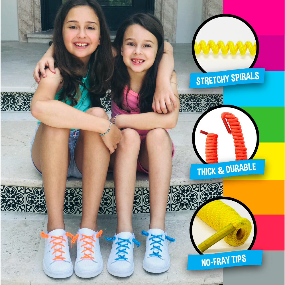 TURN SHOES INTO SLIP-ONS: Crazy Laces make sneakers easy, no-tie shoes for kids and adults. Fun spiral elastic cords come in 10 vibrant colors.